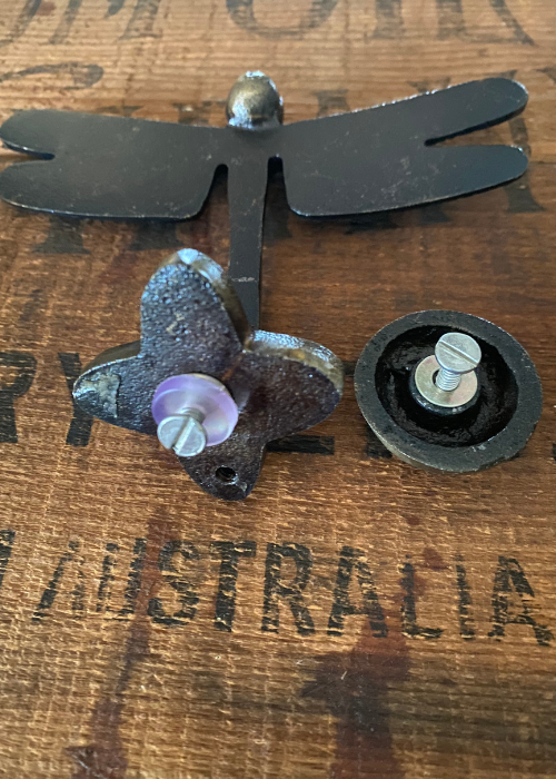 Well weighted cast iron dragonfly door knocker. Antique brass finish. Comes with rounded knocking plate. Approx dimensions 12.5cm length, 15.5cm...