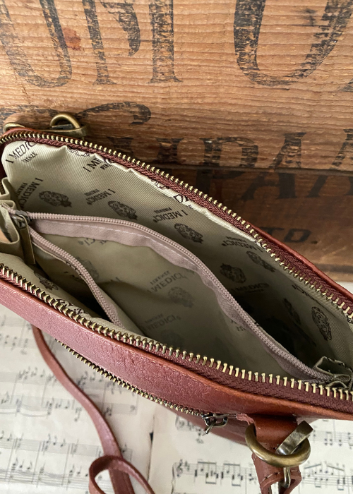 Beautiful leather jewellery case. Two detachable leather straps to keep up to 20 earrings and other accessories. Six zip pockets...